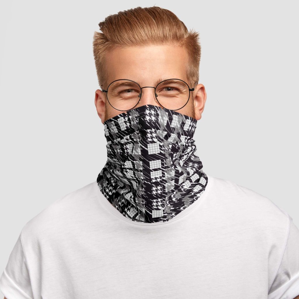 - Ja šalli lieto kā masku, tad deguna zonā ir fiksators.